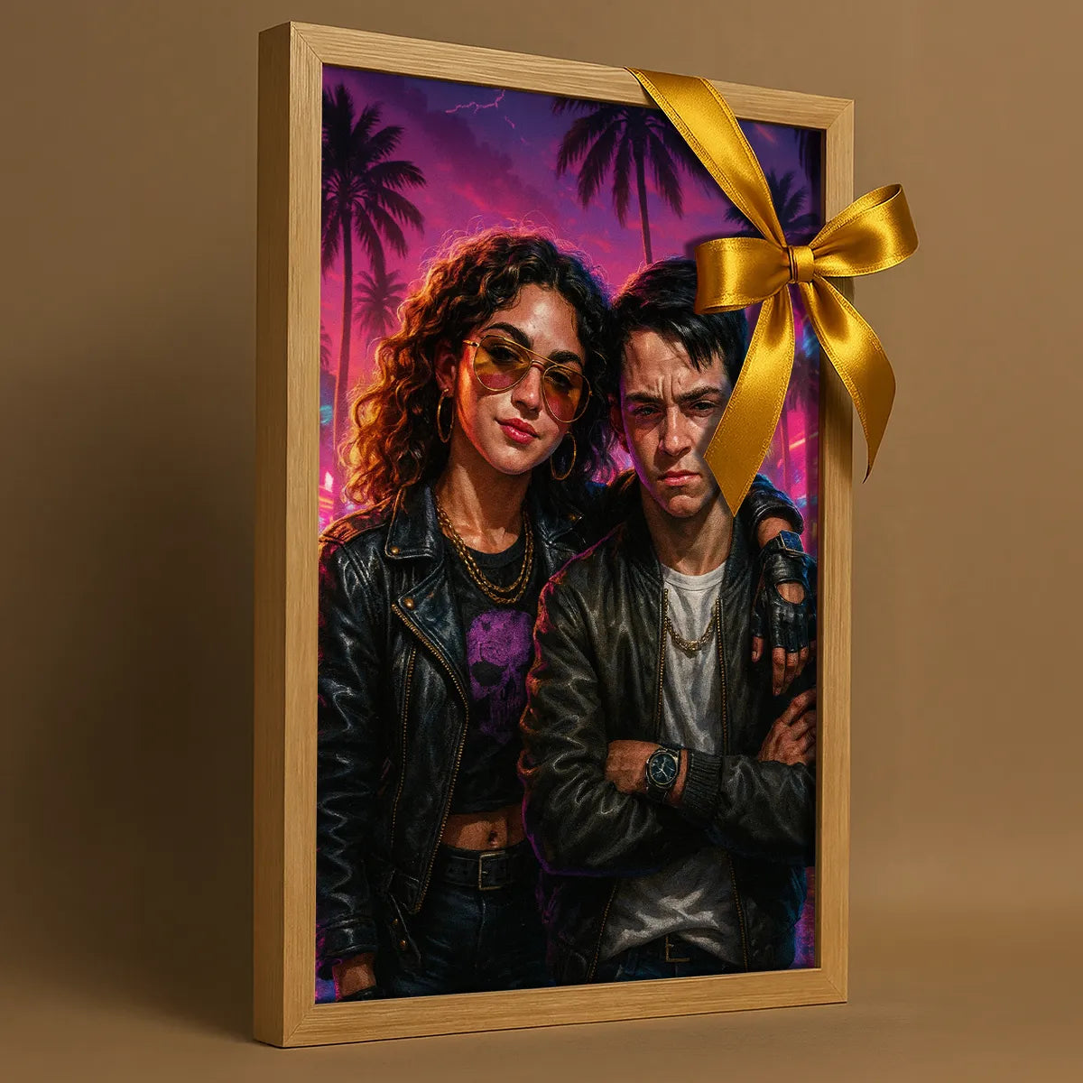 Non è solo un ritratto: è una scena cinematografica. Ogni opera è stampata su Forex ecologico, materiale rigido e leggero che valorizza luci e contrasti. Rifinito con una cornice in legno naturale certificato FSC, per un effetto di forte impatto visivo e massimo rispetto per l’ambiente.
