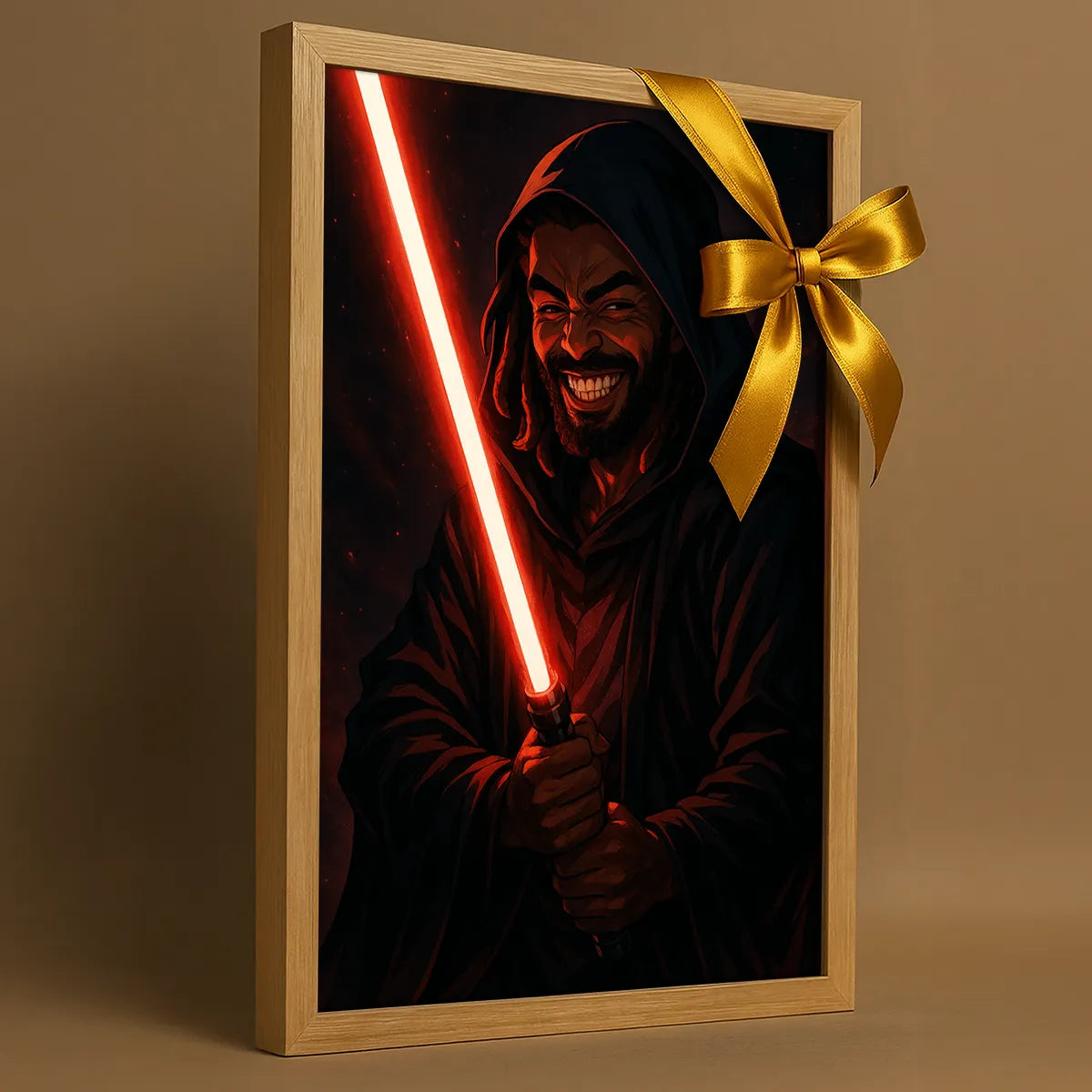 Immagina il tuo amico pelosetto (o il tuo volto) trasformato in un guerriero oscuro proveniente da un manga futuristico: spada luminosa rossa, sguardo tagliente e un’aura minacciosa che conquista lo spazio attorno. Con il nostro stile Cavaliere Rosso, ogni ritratto diventa una visione potente e drammatica, un tributo alla forza visiva delle leggende galattiche.