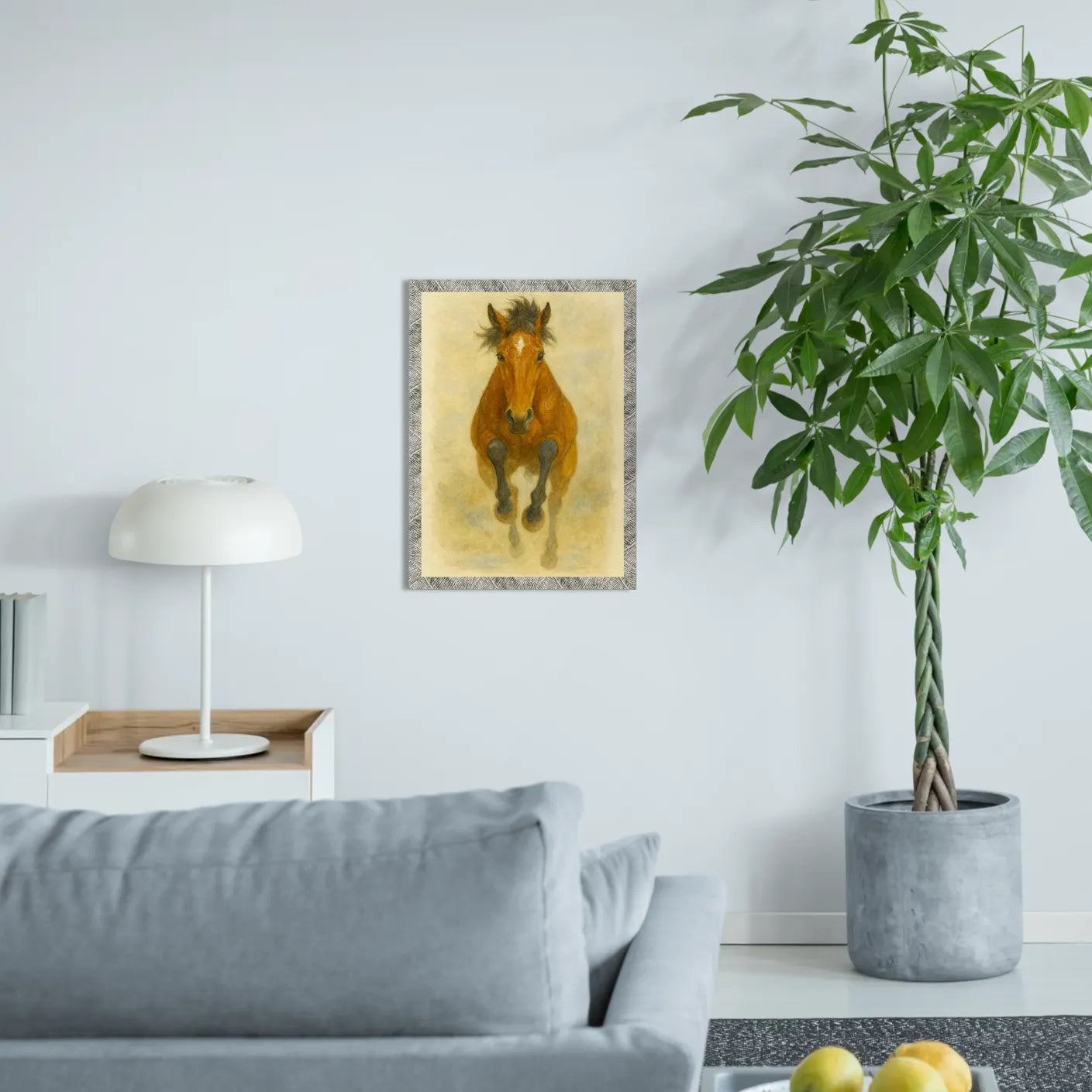 Forza, libertà e grazia si incontrano in questo ritratto acquerellato di un cavallo fiero e maestoso. L’espressione intensa e la posa in camminata danno vita a una stampa d’autore dal gusto delicato e naturale, perfetta per gli amanti degli animali e dell’equilibrio estetico.