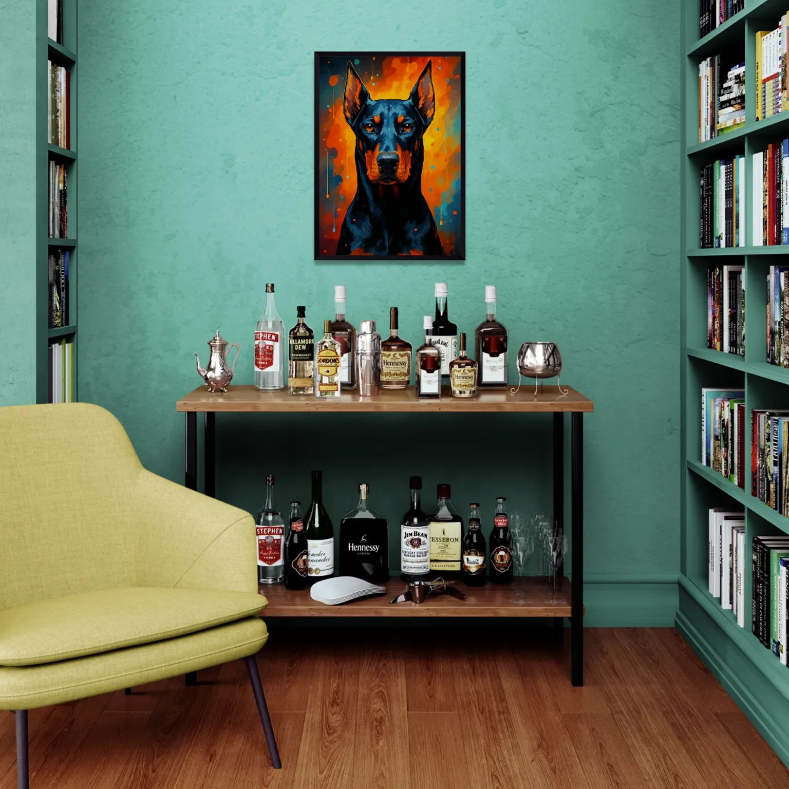 Occhi penetranti, muso fiero e colori fluo che sembrano esplodere dalla tela: il Dobermann PopBurst è un'opera audace, perfetta per chi ama l’arte che morde lo sguardo.