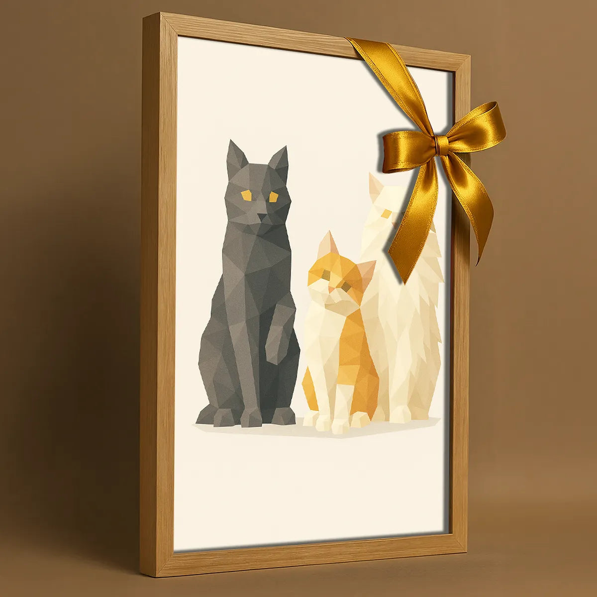 Immagina il tuo amico a quattro zampe (o il tuo volto) trasformato in una scultura digitale ispirata all’arte del papercraft: forme sfaccettate, angoli netti, colori piatti che definiscono un’estetica moderna ed essenziale. Con il nostro stile Low Poly, ogni ritratto diventa un oggetto di design unico, che unisce arte digitale e cura artigianale.