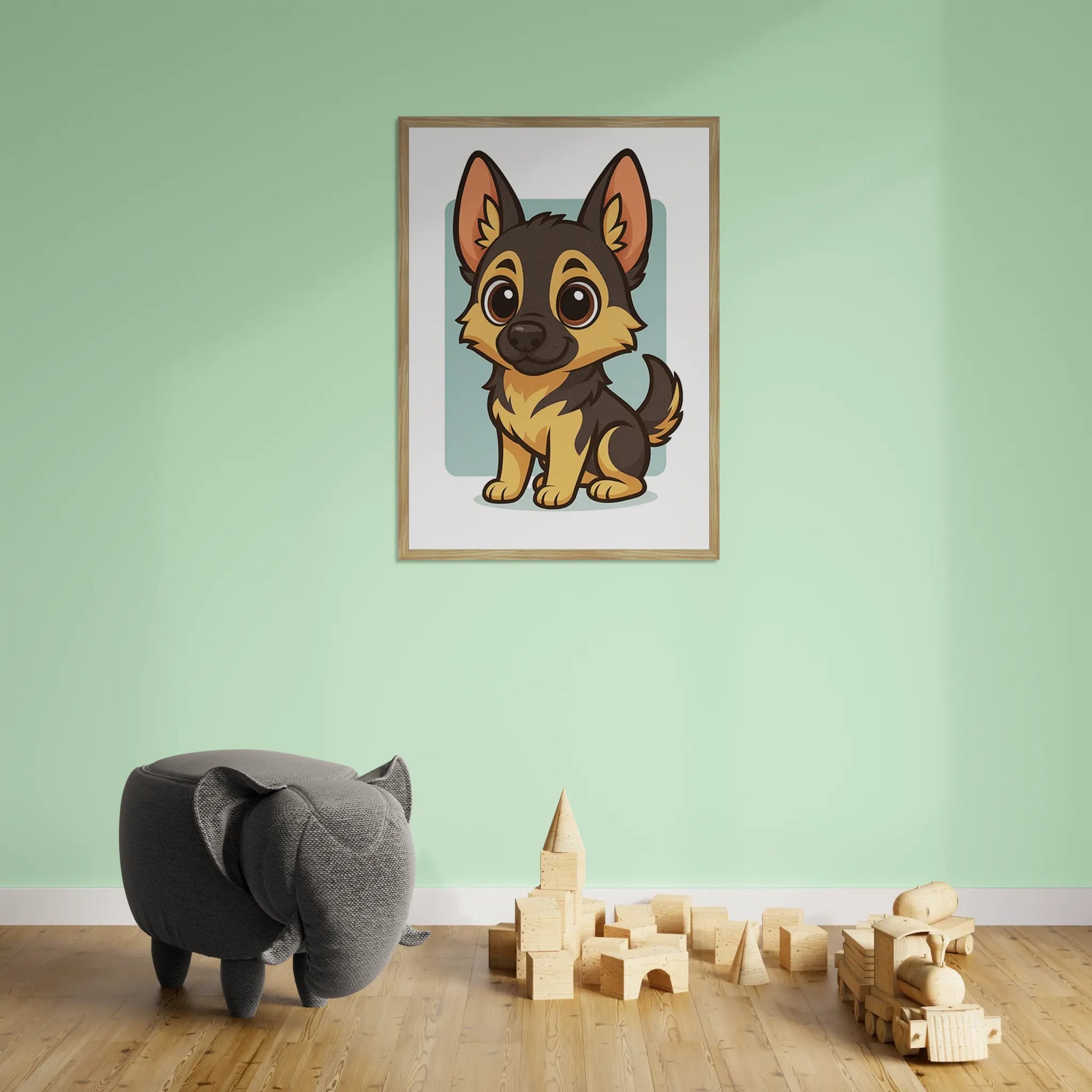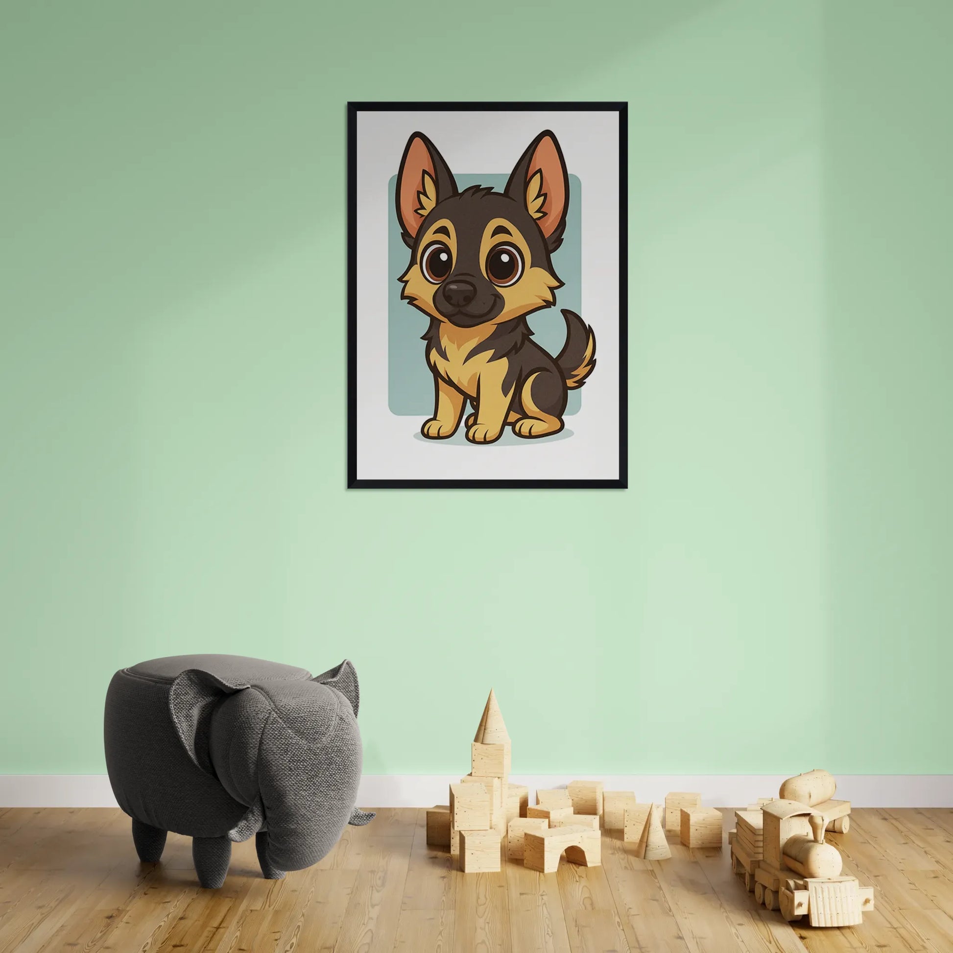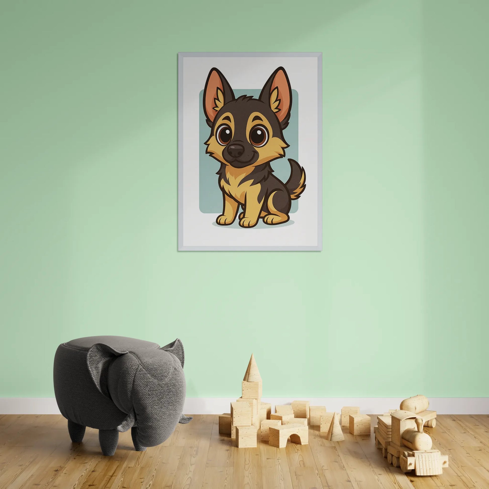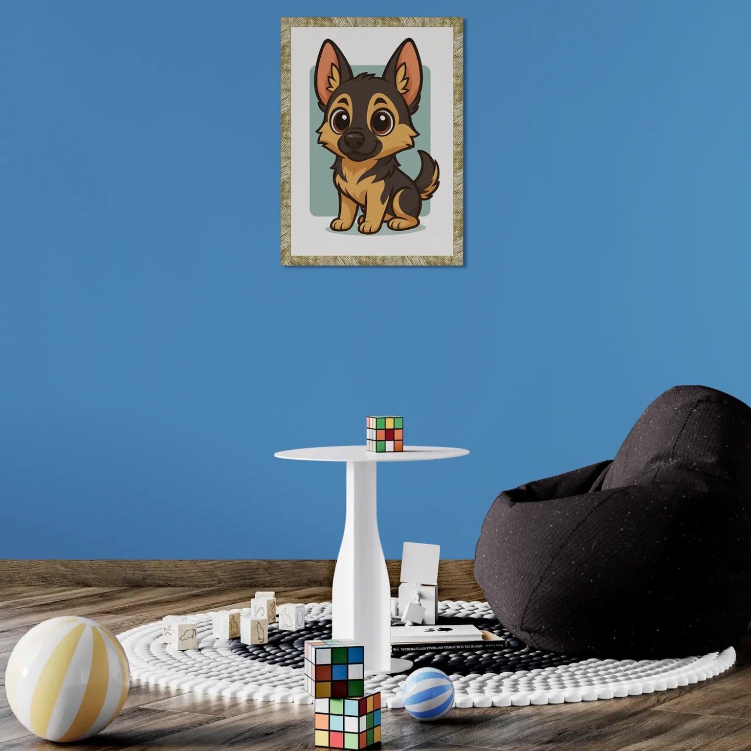 Porta in casa la dolcezza di un gigante buono con questo tenerissimo quadro del Pastore Tedesco in stile Chibi. Il suo sguardo buffo e vigile, le grandi orecchie dritte e i colori tipici della razza rendono questa illustrazione perfetta per chi ama i cani protettivi ma affettuosi.