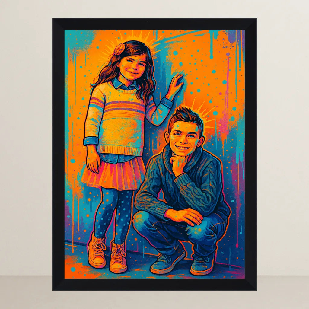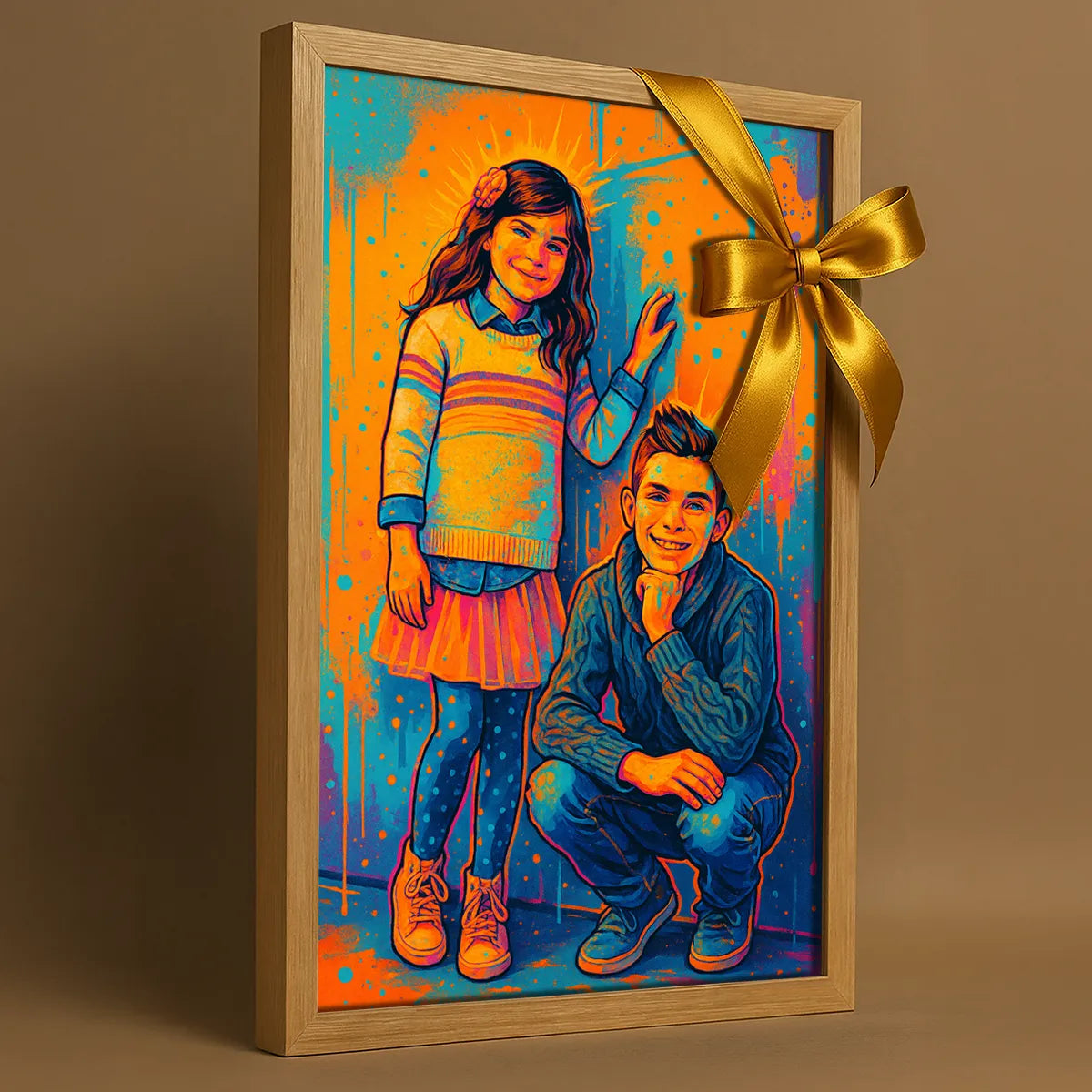 Immagina il tuo amico a quattro zampe (o il tuo volto) trasformato in un’opera d’arte contemporanea, capace di unire tecnologia ed emozione: un ritratto in stile Pop Burst, dove colori intensi e forme astratte evocano un mondo vibrante e dinamico.