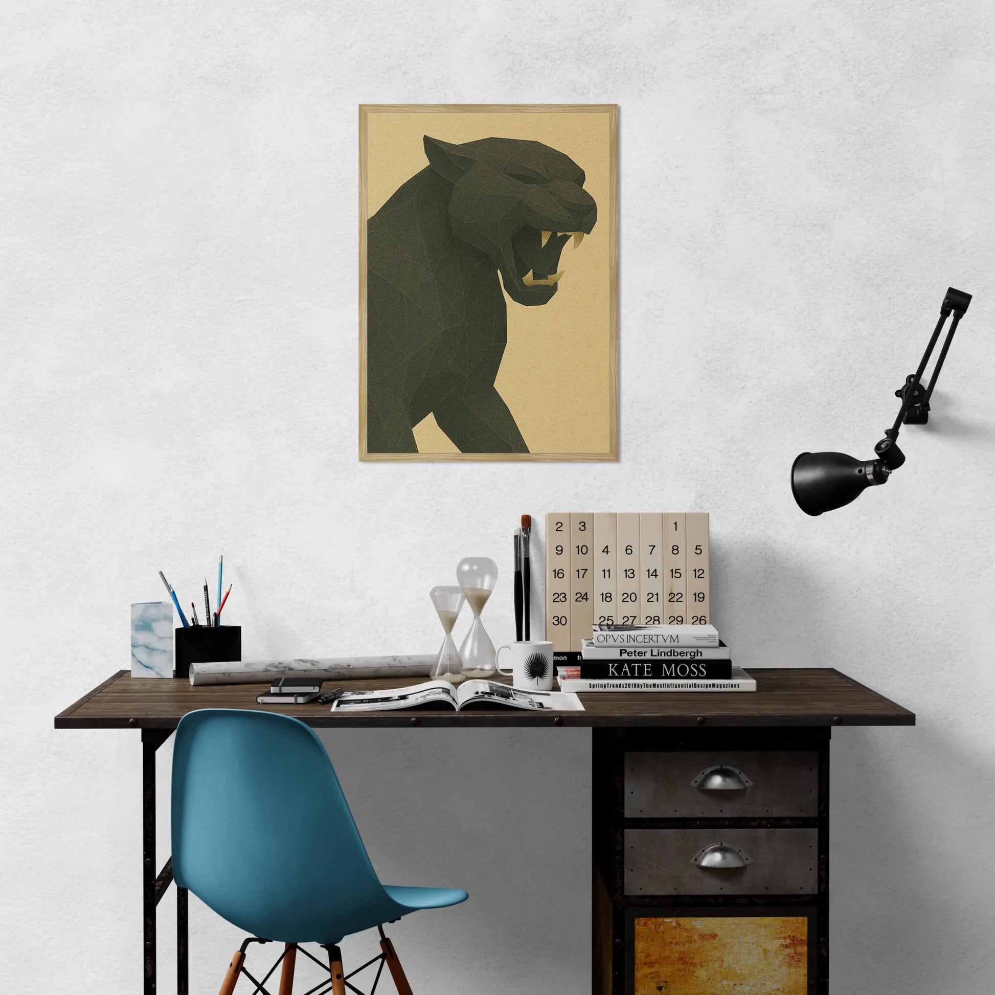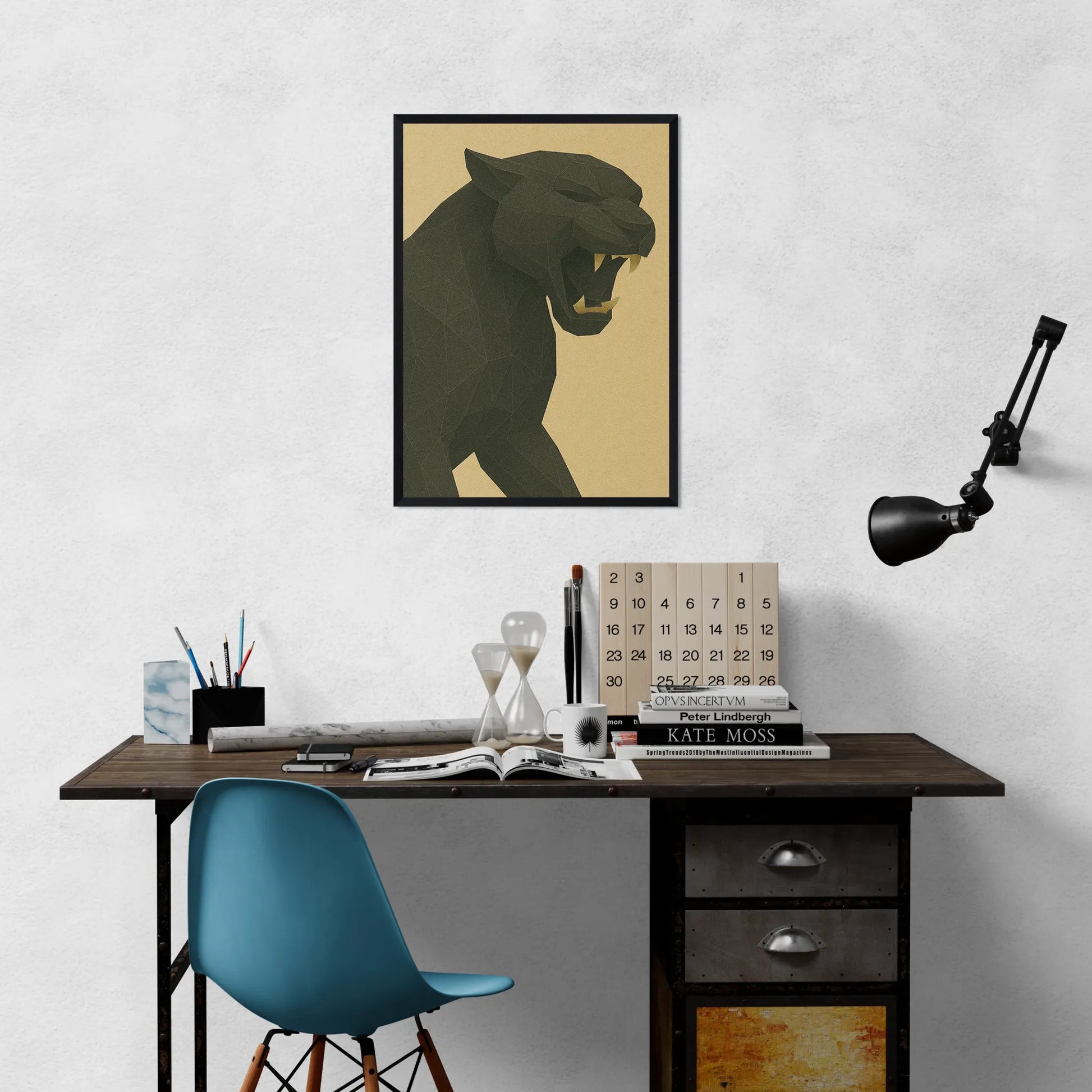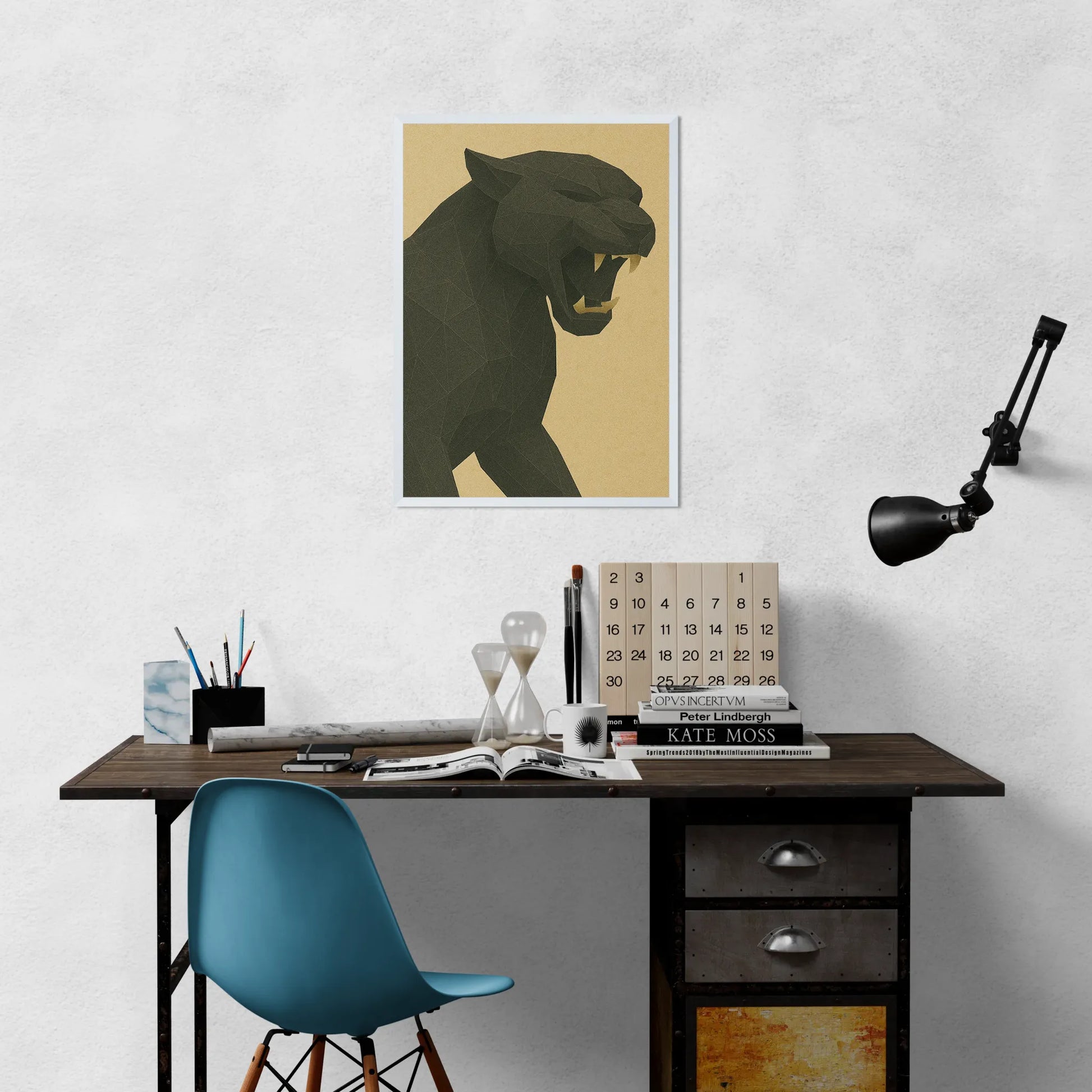 Aggiungi un tocco grintoso e sofisticato alle tue pareti con questo ritratto geometrico di Puma nero in stile low poly. Le superfici sfaccettate e i contrasti netti esaltano la tensione muscolare dell’animale, ideale per spazi moderni o per chi ama soggetti forti e decisi.