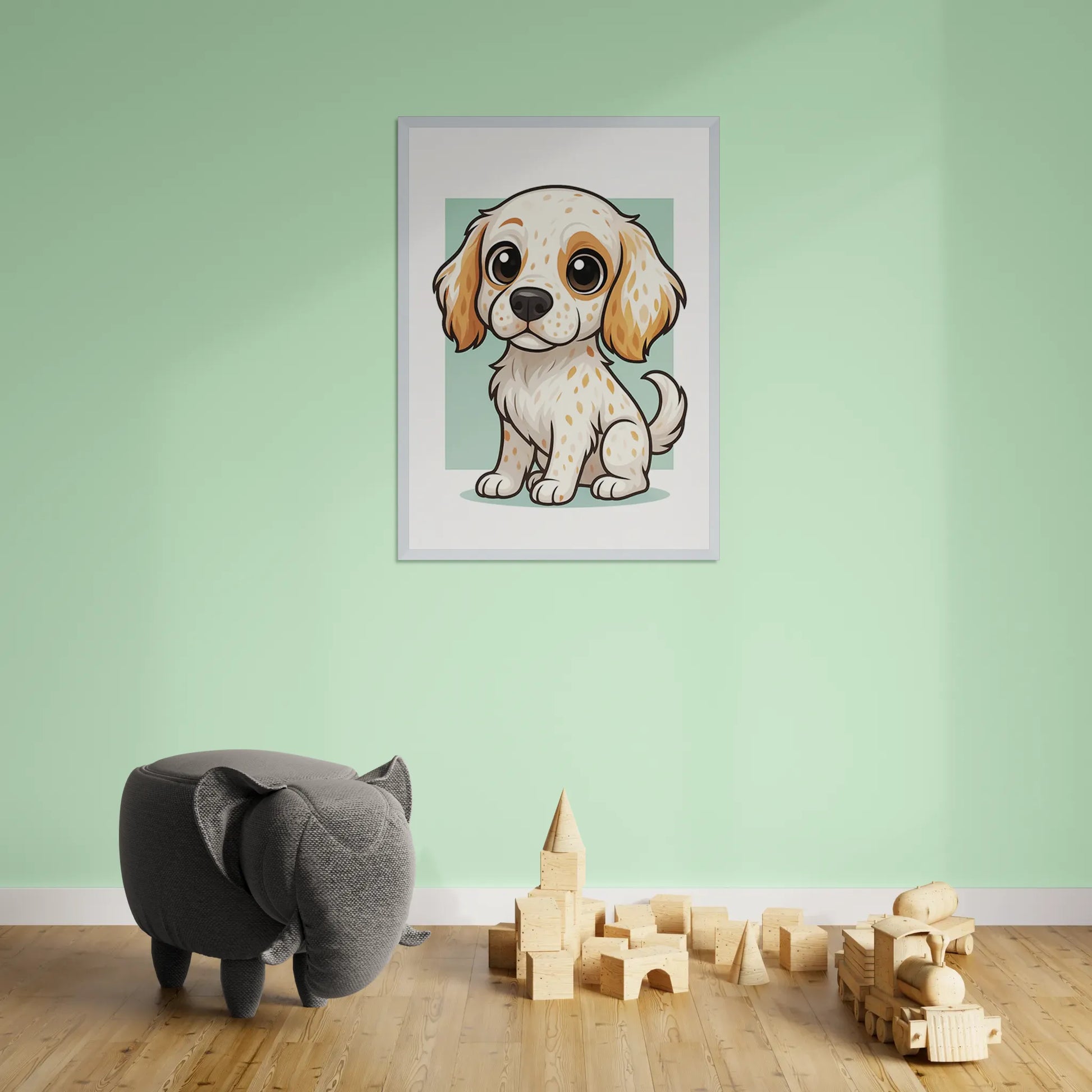 Dona simpatia e stile ai tuoi ambienti con questo tenero quadro in stile Chibi del Setter Inglese. Con orecchie lunghe e occhi dolci, il suo sguardo fedele è reso ancora più irresistibile dalle proporzioni giocose tipiche del mondo Chibi.